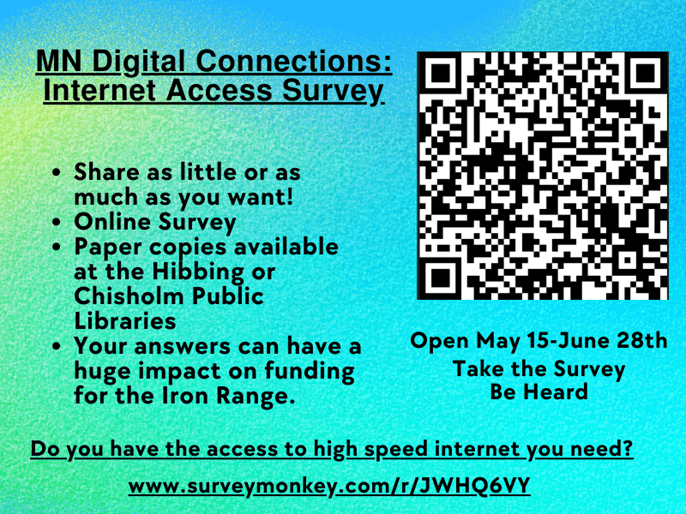The local Digital Connection Committee has asked for help from the people in the Side Lake area to assist by completing a Broadband & Internet Survey. This survey will collect information from our community about what access you have to the internet and what services are available in our area. You can fill in as many or as few questions as you are comfortable answering. This information impacts state funding for the Iron Range and will address the problems and gaps in the internet coverage and access in our area.