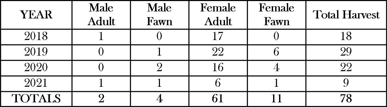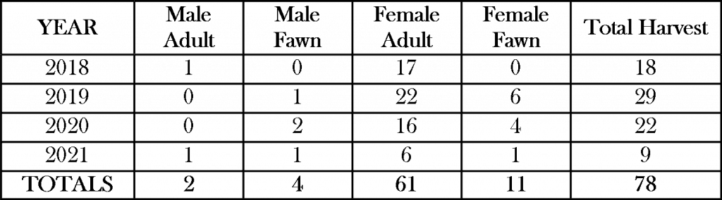 Results from 2018 – 2021 Special Archery Deer Hunt